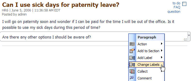 You may want to assign one or more tags to a paragraph to call it out as important to a certain category, or for further action. In this example, the user will add the Question and To Do tags to the 2nd paragraph. Simply right click on the 2nd paragraph to raise the context menu for that paragraph and select change tags: