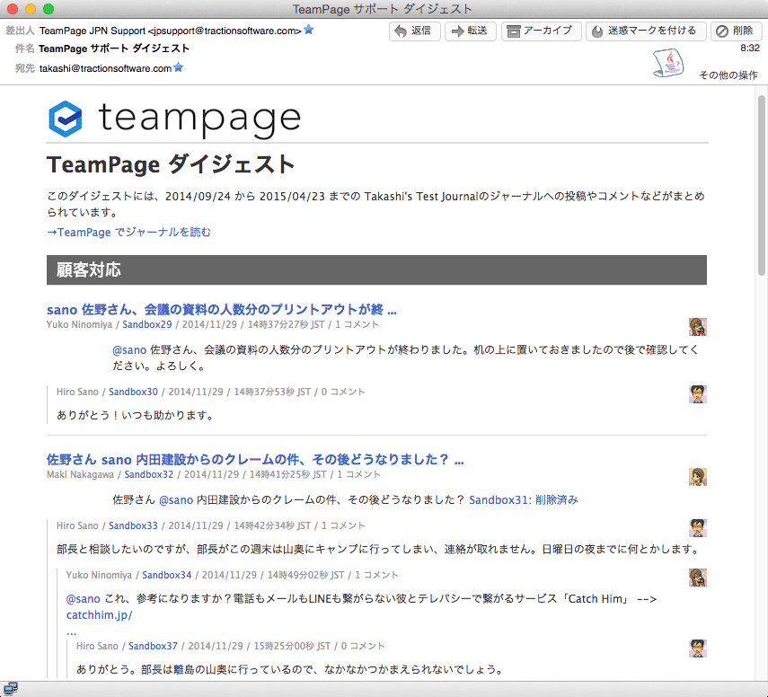 Takashi concludes (in Google translation): "I think you have done already the spinach by e-mail. Why not been investigated in-house social us to support it. Just add a little plus of 'CC in TeamPage', you can get a big plus."