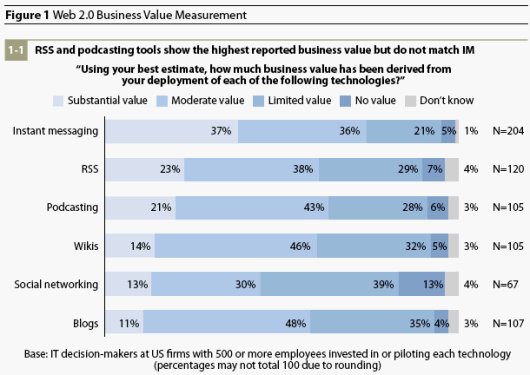 Forrester provided more grist for the data mill on this topic. The following chart and some detail on it was posted at Read/WriteWeb: