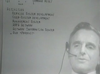 "On December 9, 1968, the oNLine System was shown publicly to the world for the first time. Encouraged by [Bob] Taylor, Engelbart had chosen the annual Fall Joint Computer Conference, the computer industry's premier gathering, for Augment's debut. In the darkened Brooks Hall auditorium in San Francisco, all the seats were filled and people lined the walls. On the giant video screen at his back, Engelbart demonstrated a system that seemed like science fiction to a data-processing world reared on punched cards and typewriter terminals. In one stunning ninety-minute session, he showed how it was possible to edit text on a display screen to make hypertext links from one electronic document to another, and to mix text and graphics, and even video and graphics. He also sketched out a vision of an experimental computer network to be called ARPAnet and suggested that within a year he would be able to give the same demonstration remotely to locations across the country. In short, every significant aspect of today's computing world was revealed in a magnificent hour and a half.