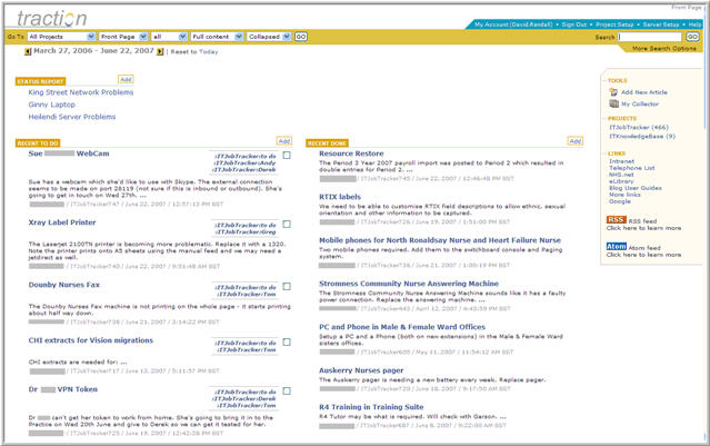 And that’s what led us to use Traction TeamPage. Wordpress or whatever is great when you’re doing a wee externally-accessible blog, but when we tried to use it on a grander scale it was just too difficult to manage. Microsoft Sharepoint is far too difficult for end-users to use, doesn’t scale well and requires an awful lot of admin effort. Traction, like NGES, just intuits what’s important for us."