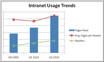 Less than a year after implementation of the company’s Traction TeamPage based Intranet, adoption has been rapid, as shown in the following graph.
